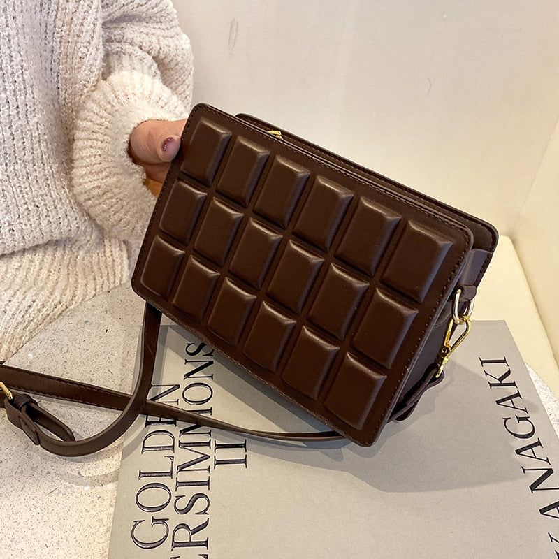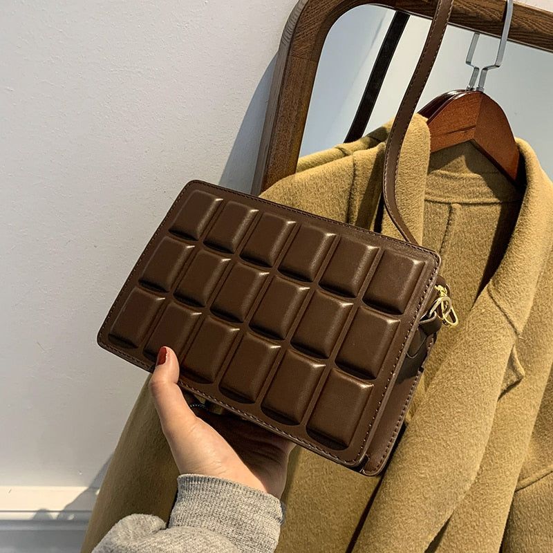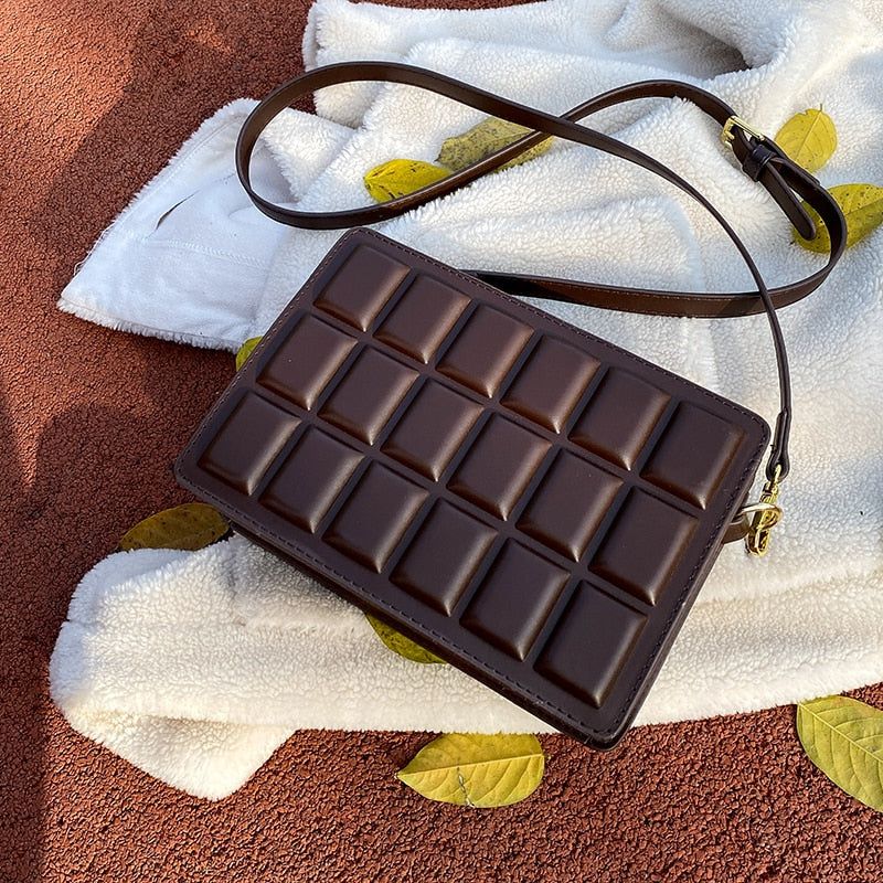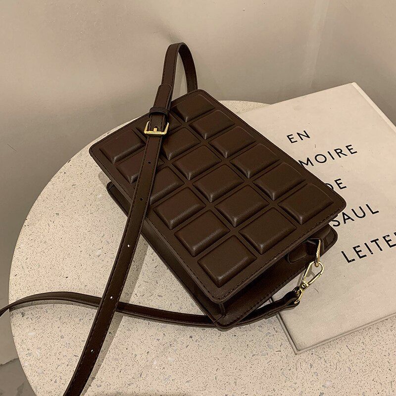 Laissez-vous séduire par le design unique de notre Petit Sac Bandoulière Chocolat, inspiré d’une délicieuse tablette de chocolat. Ce sac à main original attire immédiatement l’œil grâce à son apparence gourmande et sa texture chic. Chaque détail a été soigneusement pensé pour se démarquer et donner une note ludique à votre style.